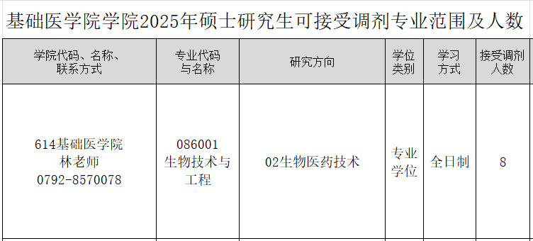 (三)优先接收第一志愿报考专业为086001生物技术与工程考生,接收部分其他08工学大类、07理学、10医学大类专业相同相近或初考科目相同相近考生。
