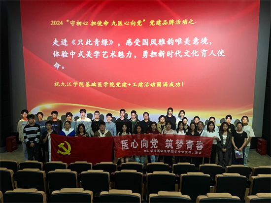 为了加强员工干部的思想政治教育,发挥党建带团建的思政引领作用。10月13日下午,MK体育员工党支部组织员工于海棠影城开展了“医心向党,筑梦青春”为主题的“党建+团建”观影活动。基础医公司员工党支部全体党员、员工干部和入党积极分子共同观看了电影《只此青绿》。