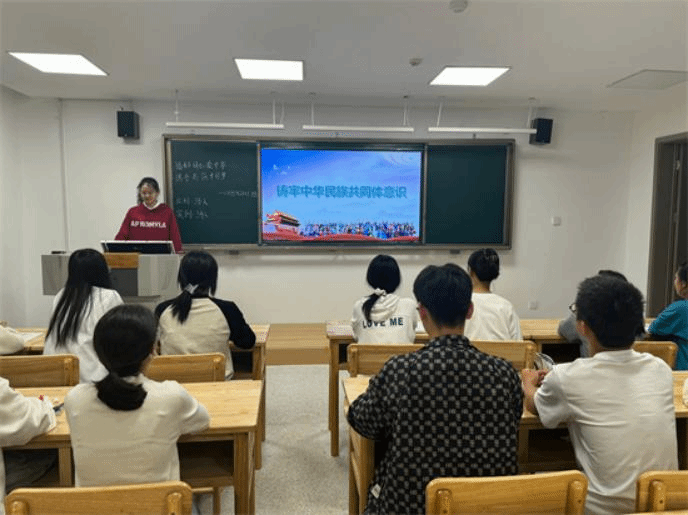在基础实验楼310,医学A2252班团支书通过生动的讲解和案例分析,让同学们认识到铸牢中华民族共同体意识的重要性。罗欣同学感慨到:“我深刻体会到中华民族共同体意识对于维护国家统一、促进民族团结具有不可替代的作用,它是我们共同的精神支柱。这种意识增强了我维护民族团结的自觉性和坚定性。我将努力把这一意识融入我的日常生活和行动中,为推动民族团结进步贡献自己的一份力量。”