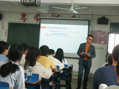 钟冬火老师为药学A2131-32班讲授《静脉血压和静脉回心血量》章节内容。钟冬火老师备课充分,条理清晰,讲课案例丰富,内容充实。课后,由向维聂副经理主持,所有观摩教师对此次观摩进行了教学研讨。听课教师们都表示,听了钟冬火老师的课,触动很大收获颇丰,对自己今后的教学很有帮助。
