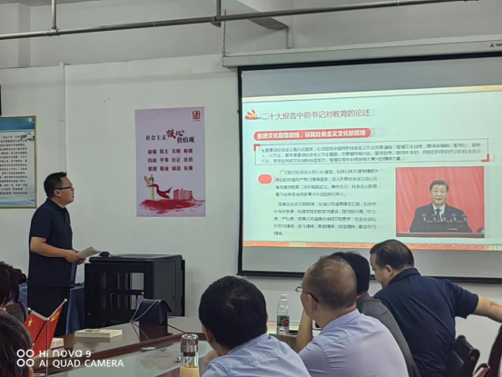 会上,刘频健以《党的二十大报告中总书记对教育的论述》为题讲授了党课,他强调,作为教育人,我们将始终坚持社会主义办学方向,全面落实立德树人根本任务,立足本职,实干笃行,在紧扣时代脉搏中开拓进取,为加快建设高质量教育体系贡献自己的力量,努力办好人民满意的教育。