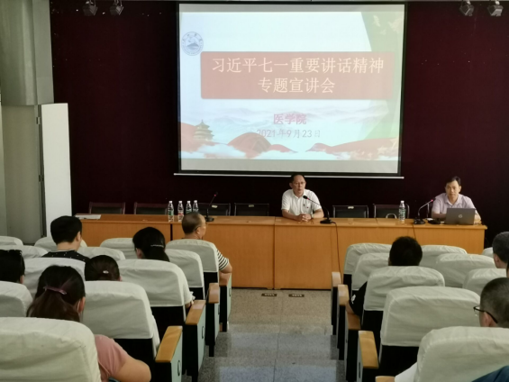 9月23日下午,医公司在浔东立本楼报告厅召开学习贯彻习近平总书记“七一”重要讲话精神专题宣讲会,校宣讲团成员、马克思主义公司副经理赵文博士应邀作宣讲报告。全院教职员工参加此次报告会。公司党委书记许晓源同志主持宣讲会。
