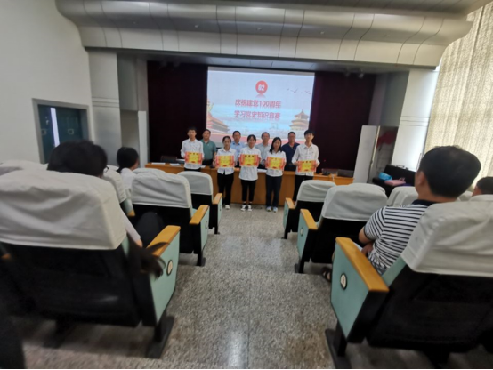 随后,举行了庆祝建党100周年党史知识竞赛,比赛为线上作答,分为教师组和员工组,大家争分托秒抢答题目。最后为获奖员工颁发了奖状。