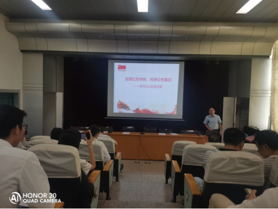会议开始,首先由许晓源同志以“发扬红色传统,传承红色基因—学习九江红色历史”为主题为大家讲授专题党课。他讲到,九江地区红色种子萌发早、红色资源分布广、红色历史影响大,作为九江人,首先要铭记九江革命历史,传承九江革命精神。许晓源带着大家重新认识了红色九江,精神得到了洗礼。