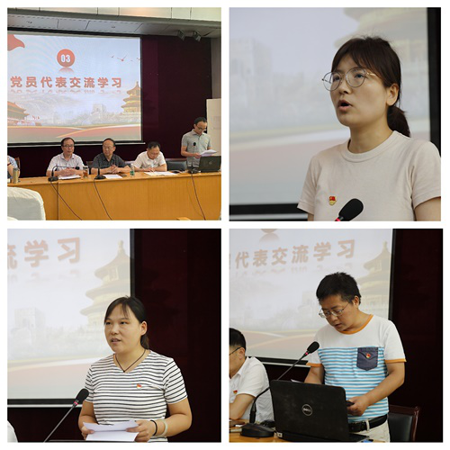 赵颀涵、陈川、刘建云、郑峰四位党员代表在会上分别回顾自己的入党初心,结合各自的生活工作,进行了入党初心的思想汇报,同大家交流心得体会。“没有中国共产党就没有新中国,中国共产党是一个伟大光荣而且正确的政党,我们应该选择最能为人类幸福而劳动的职业,我们也应该选择加入最能为人民群众谋福祉的政党,这就是我入党的初心。无论在工作还是生活当中,都应时刻牢记党员身份,坚守初心,求真务实,勤奋工作,为实现共产主义奋斗终身。”会上,党员代表的汇报发言引起了会场全体党员同志的共鸣。