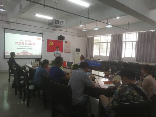 傅文学同志首先带领大家重点学习了2020年全国“两会”精神,对政府工作报告进行了详细的解读。他主要从工作回顾、发展目标、促进就业、扩大内需、脱贫攻坚等方面做辅导报告,并给出自己的理解和深刻思考,引起与会教师的共鸣,激发党员学习两会精神的热情。支部书记张杰同志以微党课的形式给大家作了《中华人民共和国民法典》的解读,他主要领学了民法典的重大意义、总体要求和基本原则以及主要内容,并认真解读了大家比较关心的民法典问题,大家一致表示将积极学习、宣传民法典。