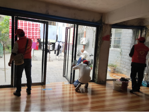 大家帮助老年中心打扫卫生,拖地、擦玻璃,做一些力所能及的事情。