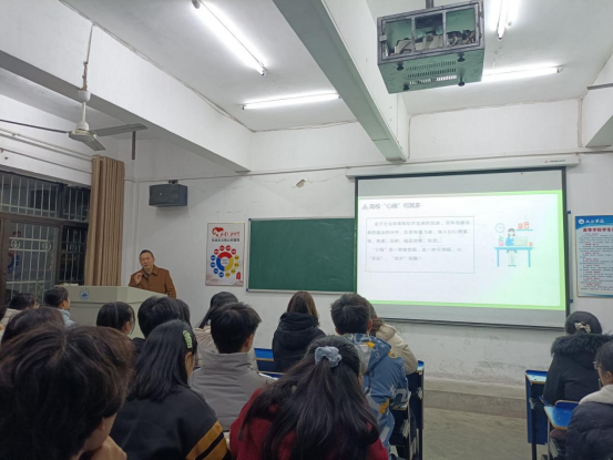 讲座伊始,胡武昌经理讲解了“向光出发,向阳而行”心理健康内容,胡经理向同学们介绍了心病所出现的原因,并解释了高校心理疾病多发的原因,分析了七情六欲的概念,使同学们更好地理解情绪。胡经理还讲授了关于心理问题和心理障碍的区别,借用马斯洛需要层次理论讲述了一些可以帮助同学们走出心理不适的问题,通过认真思考这些问题以达到明确自身走出阴影的目的。