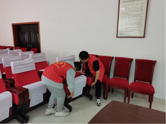 大会结束后,参会人员有序离场。在嘉宾全部离场之后,由方红梅带领医公司志愿者们打扫会场。