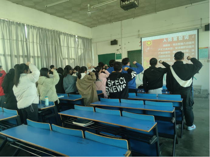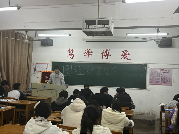 在本次团组织生活会召开之前,各班团支书让团员提前学习了团组织生活会议细则与会前理论知识学习。会议伊始,全体同学起立唱团歌,接着由团支书汇报团支部开展党史学习教育以及习近平“七一”重要讲话精神学习情况,并激励同学们继续加强学习。然后由团支部各小组组长进行小组总结,分别对小组成员年度表现进行点评,之后进行了团员评议。团支书以团课的形式讲解了社会主义核心价值观以及“三会两制一课”制度,并且对以后的工作提出要求。会议的最后,全体团员起立,重温入团誓词。
