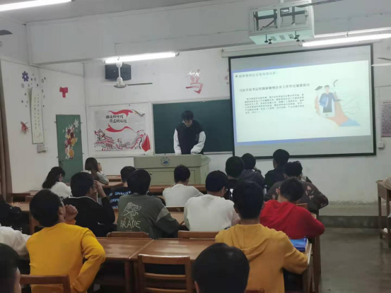 10月13号,A2041班班长在思贤楼608以“奋力谱写网络强国,建设精彩华章”为主题内容,向同学们展示了如今祖国的强大有着与网络密不可分的联系,从而激发了同学们要为网络安全献上一份力的坚定信念。