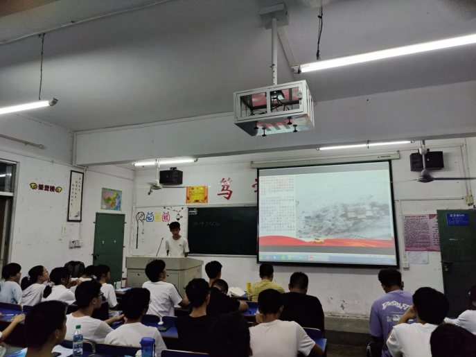 A2111班团支书肖鹏辉带领同学们重温入团誓词,观看一段段珍贵的影像资料,并组织同学们积极讨论并发表感想。不少同学表示深入了解党史,明白了如今的太平盛世来之不易,激发了同学们的爱国情怀。