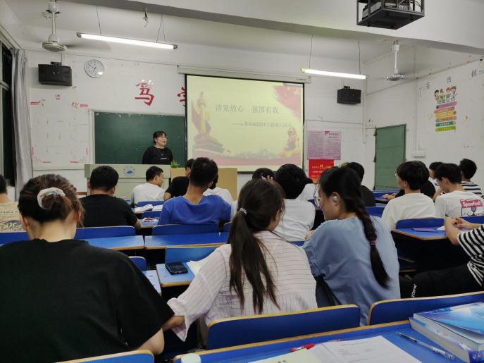 A2042班于思贤楼阶梯教室五开展了此次活动。团支书杨静向同学们深入讲解了习近平总书记在庆祝中国共产党成立100周年大会上的重要讲话,并告诉同学们要牢记习近平总书记的谆谆教诲,继续发扬五四精神,勇于担当尽责,以实现中华民族伟大复兴为己任,不负祖国和人民期待。之后,杨静带领全体同学坚定地表达了“请党放心,强国有我”的誓言。活动的最后,杨静还组织同学们即兴发言,结合自己的学习经历和个人成长历程分享团日活动心得体会。