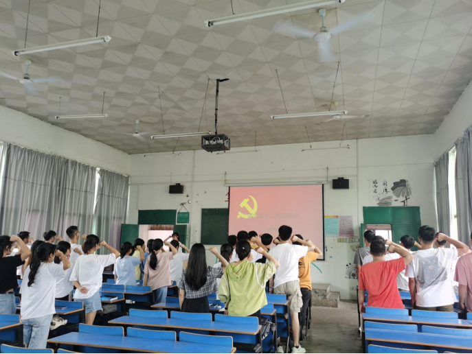 9月8日晚,各班团支书分别组织班级同学开展了此次主题团日活动。在华文楼202,A2031班团支书首先以PPT形式向同学们讲述了建党一百周年的艰辛历程,带领大家回忆那段艰难而光荣的岁月,随后跟大家一起学习了习近平总书记“七一”重要讲话精神,强调未来属于青年。最后全班起立齐声宣誓:“请党放心,强国有我”。