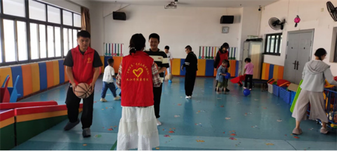 康复训练后,志愿者们又和孩子们一起进行游戏活动。在操场上,大家一起玩传球游戏,孩子们的脸上渐渐露出了笑容,开始主动与志愿者们互动。此外,志愿者们还陪伴孩子们画画,欣赏他们的绘画作品,并给予赞美和鼓励。