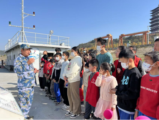 上午十一点整,志愿者们从MK体育官网出发前往湖口市博物馆与“橙光宝贝”们汇合共进午餐。午饭后,志愿者陪同小朋友们一同参观九江舰爱国主义教育活动基地。一位在九江舰上坚守36年的老兵为大家详细介绍了九江舰的构造、历史战绩和相关军事知识。他深情地对小朋友们讲到,“我国军事的强大,才有我们祖国的强大;我们今天幸福的生活来之不易,希望大家铭记历史,好好学习,报效祖国。”这一堂生动的爱国主义教育实践课在孩子们心中埋下了深厚的爱国种子,培养了他们的爱国主义情怀。