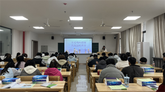 在研究生楼330,医学A2251班团支书在活动中为大家讲到:“每年12月3日的‘国际残疾人日’,是为了动员人们维护残疾人的尊严、权利和幸福而设立的节日。多年来,在国际社会的努力下,世界各地在保障残疾人权利和建立无障碍社会方面取得了一定进展。但由于造成残疾人边缘化的环境、社会和法律障碍依然存在,残疾人在就业、教育和医疗等方面的权利依然受到不同程度的限制。本次团日活动以‘关爱残疾群体,共筑温暖世界’为主题,希望能够引导同学们参与进来,积极为残疾人做贡献,为残疾人创建更美好的明天而努力。”