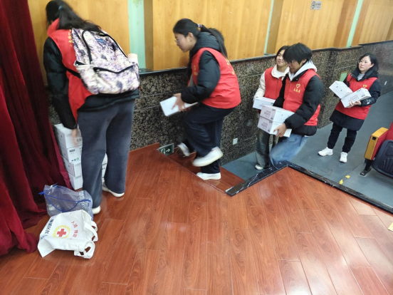 清晨,志愿者们满怀爱意早早抵达九江市图书馆。大家迅速展开准备工作,搬运爱心物资物,牛奶、书包及各学习用具等。每一件物品都代表着志愿者们的一份温暖和爱心。之后,志愿者们又迅速分工,分别值守在图书馆的各个地方。一部分志愿者热情又耐心地指引受助方和义工们前往活动报告厅及落座位置;一部分志愿者为行动不便的老人和携带小孩的家庭提供帮助,搀扶着他们安全到达目的地;在活动报告厅内,另一部分志愿者陪小朋友聊天,用温柔的话语和亲切的笑容与他们拉近距离。