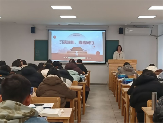 在教学楼B504,口腔A2411班团支书舒艺组织同学们一起了解书籍《习近平与老员工朋友们》第一、二卷,共同体会国家主席的艺术与责任担当。舒艺表示,该书通过讲述习近平总书记与老员工朋友们交往交流交心的故事,展现了习总书记对青年特别是老员工始终如一的关注关心关爱。这本书是高超领导艺术的体现,它通过剖析独特人格魅力,阐述深厚人民情怀,从而引领当代青年从中培养责任意识担当,了解国家历史,传承红色基因并树立远大理想。