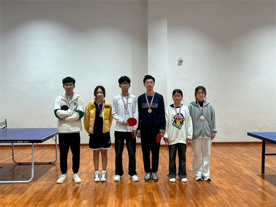 随着哨响,比赛正式开始。赛场上,选手们充分发挥高超球技。口腔A2414班陈浩夫同学凭借强大心理素质和精湛旋转技巧,一路过关斩将,夺得冠军;医学A2242班王文涛同学以坚实的基本功,在赛场上驰骋,其上下旋发球切换自如,拉打迅猛,让对手难以招架,荣获亚军;基础A2422班文洲同学巧妙结合长、短、快、慢球,调动对手,凭借高超反应力守住季军。