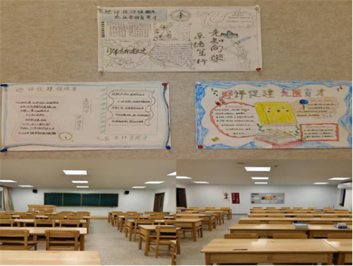 手抄报创作环节以“迎评促建强根基,九医杏林育英才”为主题,各班级同学积极响应,将对评估工作的理解与个人责任融入创作中,用手抄报形式展现了对医学教育的思考与感悟。有的作品将评估知识与医学元素巧妙结合,如以人体结构图呈现评估要点,或以漫画形式展现员工在评估中的角色担当,生动诠释了医学专业特色与评估工作的紧密联系。