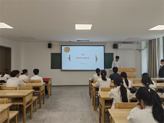 随后,新团员代表医学A2351班黄少婷同学进行发言,她对能够成为一名共青团员深感荣幸与自豪,同时也明白身上肩负的时代责任。今后她将以更高的标准严格要求自己,发挥模范带头作用,努力成为一名优秀的共青团员。老团员代表医学A2342班苏赫哲同学也分享了自己在共青团中的成长经历,鼓励新团员珍惜青春时光,勇于担当,积极参加团组织的各项活动,不断提升自己,在实践中磨砺意志,在奋斗中实现人生价值。