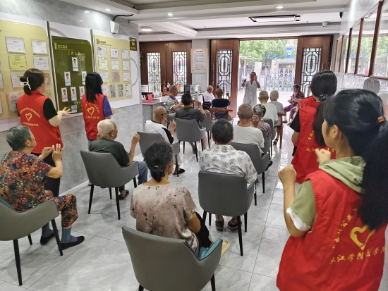 志愿队伍在9月20日二次启程,走进庭院开展暖心服务,他们协助行动不便的老人入座,并组织了一场轻松的户外健身操。锻炼结束后,志愿者则进行分组陪伴,有的在活动室与老人对弈象棋,有的在座椅旁聆听老人讲述往昔,还有的推着轮椅陪老人漫步庭院、共赏秋色,切实提升了老人们的获得感与幸福感。