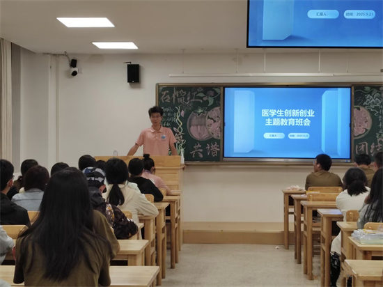 2025年9月21日,MK体育依托大创项目"基于朋辈引领的大一新生创新创业能力提升路径研究",在基础A2521班和基础A2522班教室面向同学们开展"创新创业"主题班会。本次班会以朋辈视角切入,结合项目研究成果,系统解读创新创业知识,帮助同学们明确医学创新方向,激发其参与热情。
