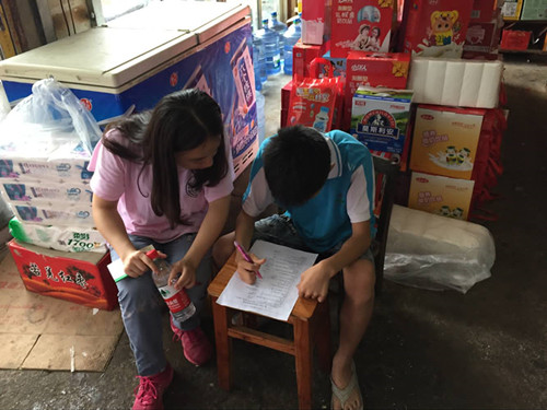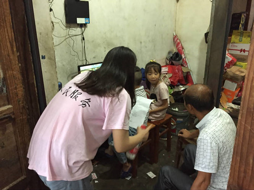 此次活动因为大雨给同学们活动的开展加大了难度。最后大家商量决定,主要以队员们挨家挨户上门为主。同学们主动走近镇上居民家中,向小朋友说明来意。在那里,同学们发现大多小朋友都是独自在家写作业,或者是爷爷奶奶在做事,他们在旁边的小板凳上写作业。他们腼腆的接过调查问卷,一些年纪较小的小朋友无法看懂题目的意思,三下乡队员耐心的在旁边陪伴并且一一解释。