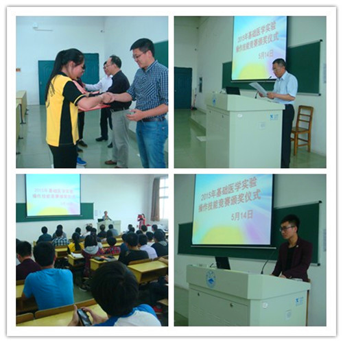 5月14日下午,MK体育于华阶二举行首届医学实验操作技能竞赛颁奖仪式,出MK体育经理车向新、党委书记余朝阳、副经理郑美蓉、副经理汪鑫,校实验中心实践教学管理科科长郭松,员工科、基础实验中心的老师席仪式。2014届临床本科的同学们参加了此次颁奖仪式。