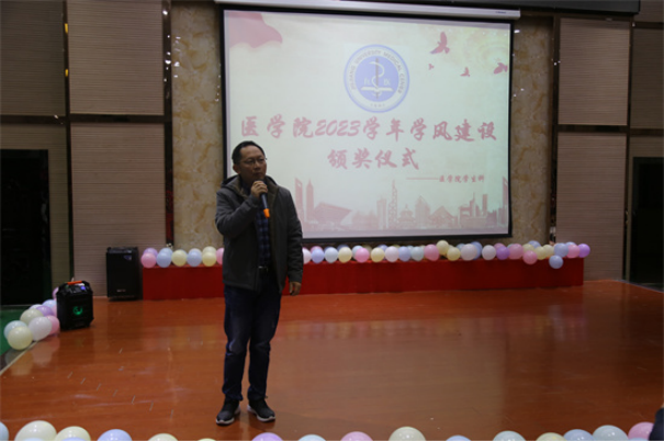 颁奖仪式上,医公司党委书记许晓源对学风建设活动的意义提出肯定,他讲到本次活动对打造医公司严谨求学的学风,积极进取的工作作风具有重要意义,鼓励同学们继续在各类校园活动中积极展示自我,营造温馨、和谐、求实、进取的校园氛围,为推动医公司校园文明建设添砖加瓦。