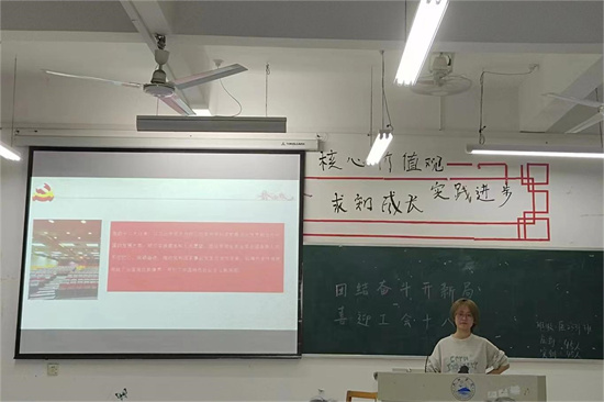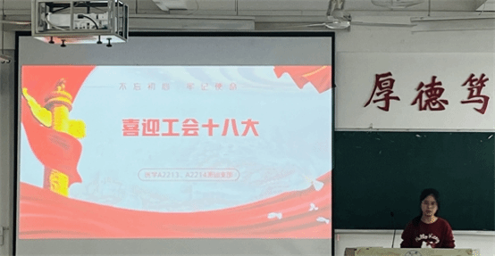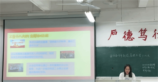 在义丰楼306,A2212班团支书带领同学们就相关知识开展此次团日活动。活动伊始,团支书从主要任务、大会机构、选举结果、大会进程、出席代表等多个方面向同学们详细介绍了中国工会第十八次全国代表大会。同学们纷纷表示要学习工人精神,以高昂的劳动热情和忘我的奉献精神,拼搏奋斗、争创一流。