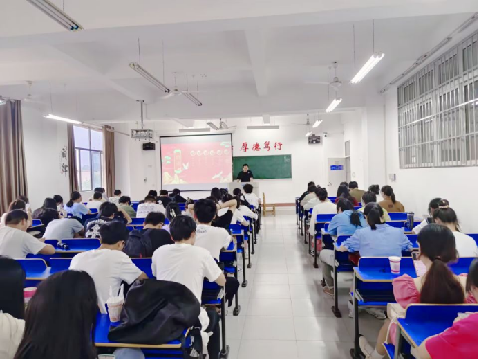 A2243班在香远楼604教室开展团日活动,团支书从青年角度向同学们讲述该精神,激励同学们要有坚定的理想信念。能够担当民族复兴大任的时代新人,需要有崇高的理想、坚定的信念,在新时代新征程中不断增强中国特色社会主义道路自信、理论自信、制度自信、文化自信。