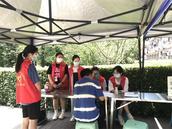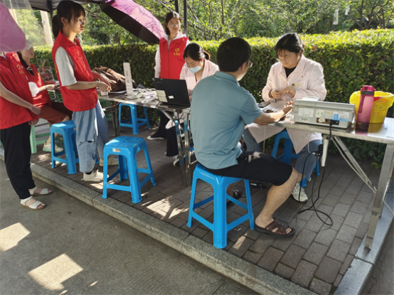 此次活动参与人员众多,但在血站医生的精心指导和志愿者的暖心服务下,各项工作有条不紊地开展。活动第一天,虽烈日当空,但前来献血的同学依旧不在少数。早上9:40左右,已经有献血者在等候,可见医公司员工对于公益事业的热情之高。在医员工志愿者们的组织下,献血者们依次进行了领表登记、血型测定、抽血和观察休息,在这过程中志愿者们配合工作人员,耐心解答同学们的问题并缓解同学们的紧张情绪。献血结束后由血站工作人员为献血者打印献血证并配发小礼品。每一位献血者脸上都洋溢着开心的笑容,因为他们的无私奉献会使更多患者得到救助。在工作人员和志愿者的讲解和鼓励下,不少同学也克服恐惧,积极参与献血。