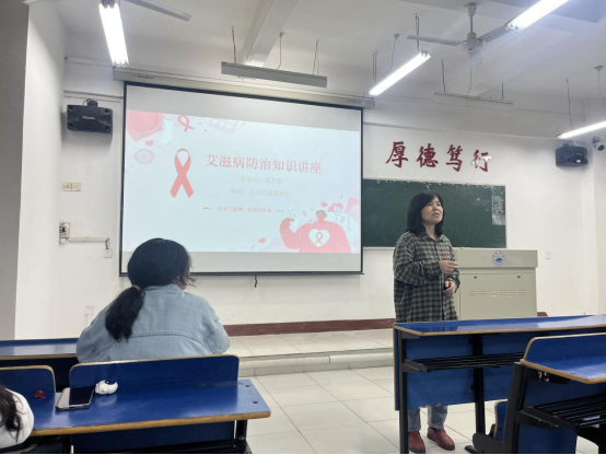 为了提倡”关爱生命,预防艾滋病”的健康理念,增强同学们对艾滋病的清晰认识,促进同学们自我保护意识,医公司于5月11日在义丰楼407组织22级预防班开展预防艾滋病防治知识讲座,主讲人为九江市疾控中心艾滋病性病防治科科长黄文军。
