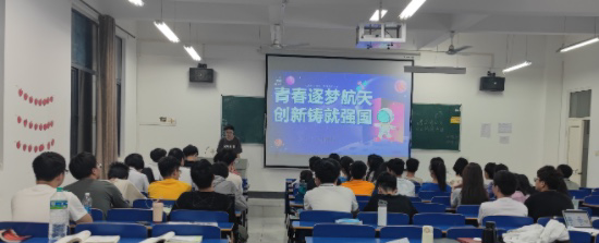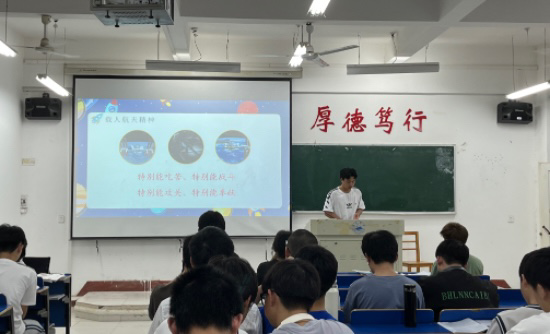 在思贤楼609,A2113班团支书将此次团日活动分为三个内容。首先,他向大家介绍4月24日中国航天日的由来;紧接着介绍了中国航天简史,从万户到如今的嫦娥系列,中国航天取得了巨大的进步;最后介绍了近年中国航天成就。同学们纷纷表示此次团日活动增强了民族自尊心,自信心,决心为中华民族伟大复兴而努力奋斗。