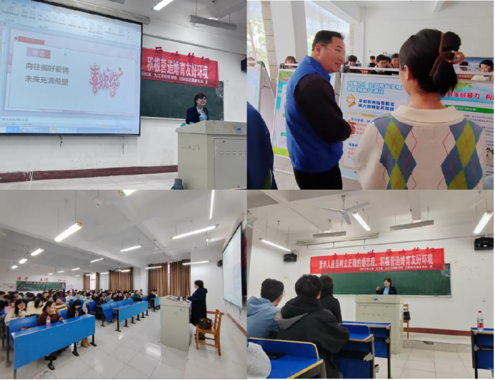 讲座于9时30分正式开始。袁毓明从对恋爱的看法切入,详细地讲解了恋爱、婚姻与性三者之间的关系,并且教导同学们如何培养在婚姻中的责任心。语言生动,情绪充沛,在她的引导下,同学们明白要想树立正确的婚姻观,首先要有一个婚姻方面的具体构想,需要去明确自己的另一半是如何的标准,并且做好自己的婚恋规划,而不是盲目的去谈恋爱去冲动的结婚,本着谨慎负责的态度来选择自己的另一半营造好自己的家庭才是正确的婚姻观。同学们也在讲座中积极提问,发表自己对于恋爱婚姻的观点看法,袁毓明也和同学们一同深入讨论。最后讲座同学们有序前往义丰楼一楼大厅观看展报,并以大家一同合影留念落下帷幕。