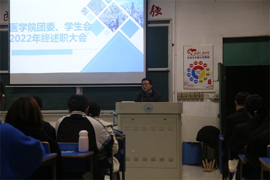 12月9日晚,医公司在浔东校区思阶二教室举行了2022年员工干部述职大会。医公司党委副书记刘频健、员工科科长陈文雯、思政教育科副科长樊云燕和全体员工干部参加会议。大会由主席团成员修天宇主持。