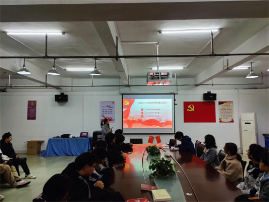 活动中,樊云燕从中国共产党发展史、中华民族发展史、世界文明发展史三方面向同学们介绍了党的二十大胜利召开的重大意义。她还向各位员工干部们介绍了党的二十大具体精神内涵,中国共产党的中心任务,中国现代化的含义等,并结合员工干部的职责将党的二十大精神更加生动形象地讲授给在座的各位同学。樊云燕强调,员工干部要发挥好带头和桥梁作用,带动员工共同学习宣传贯彻党的二十大精神,坚定不移听党话跟党走。在场的员工干部们认真聆听老师对党的二十大的专业解读,也对党的二十大精神有了更深刻的心得体会。大家纷纷表示会将党的二十大精神融入自己的日常学习生活中,踔厉奋发,不忘初心,牢记使命。