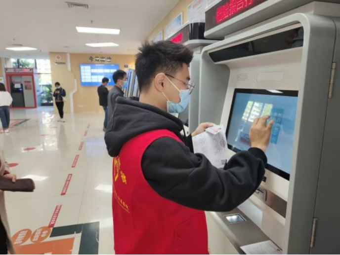 根据医院的志愿者需求,医公司根据同学们的课余时间,定时定点合理安排志愿者前往医院开展志愿服务活动。活动开展前,志愿者们进行了统一的门诊服务志愿工作培训,增强了对工作环境的熟悉程度,保障了面对患者时的服务水平。活动中,同学们在门诊一楼学雷锋志愿服务站签到,统一穿着志愿者红马甲,在门诊各区帮助患者指认相关科室的位置,协助患者使用自助机器。面对每一位寻求帮助的患者,志愿者们皆以饱满的热情和充足的耐心来接待并解答,力求以自己最佳的服务态度为患者带来更好的就医体验。在每一位来院患者的问题被解决后,志愿者们对医院的导医服务有了进一步的了解,在服务他人、服务社会的同时,自身专业素养也得到了发展与提高。