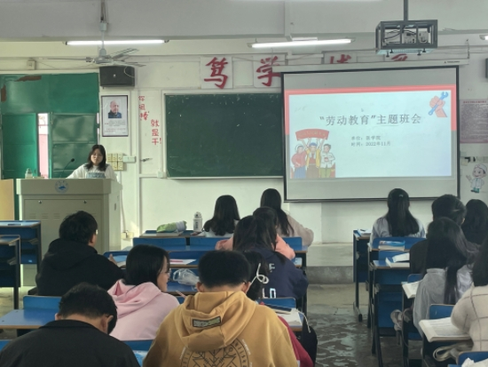为了宣传新时代劳动精神、强化同学们的劳动意识与责任感、弘扬劳动正能量和劳动文化,鼓励同学们积极主动参与到劳动中去,医公司于十一月上旬积极开展“劳动教育”主题班会。本次班会由各班劳动委员负责组织员工在本班固定教室开展。