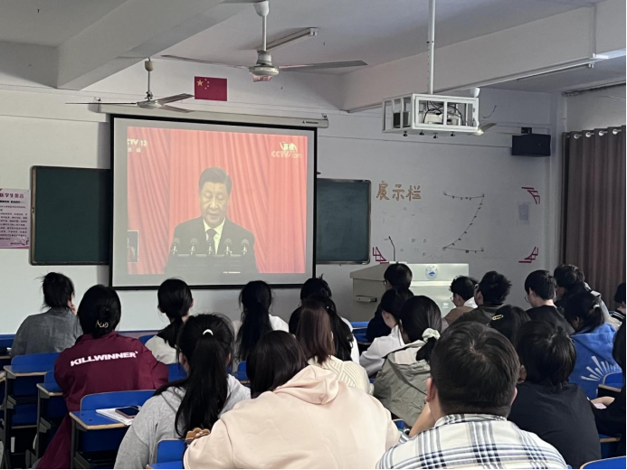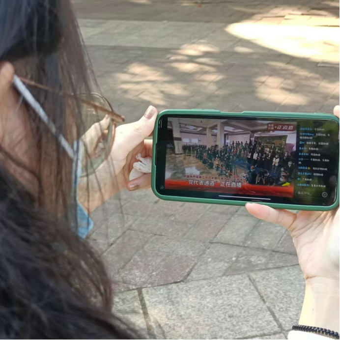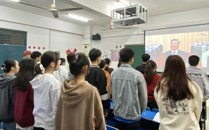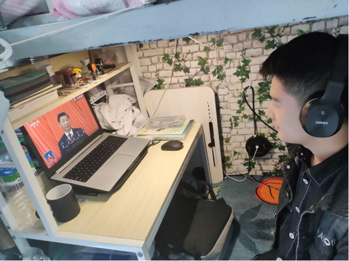 同时,各班级其他同学在寝室里以个人或集体的形式观看二十大直播。尽管在不同的地方,不同的寝室观看直播,同学们爱国爱党的心却始终连在一起。