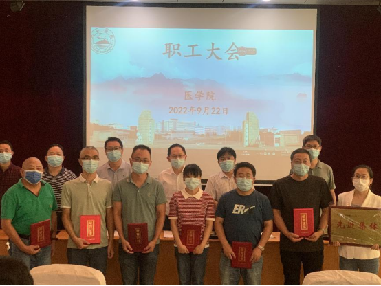 会上,许晓源对医公司近期引进的博士和老师向全院教职工进行了介绍,并表示热烈欢迎。同时对医公司2021年度取得的成果进行了肯定, 对在2021年度获奖的先进集体、优秀教师、优秀教育工作者及优秀班主任、辅导员进行了颁奖。许晓源向全院教职工传达了省高校年度综合考核满意度调查要求,动员全院教职工积极参与,认真对待,并强调了考核意义的重大以及高校未来的持续发展。