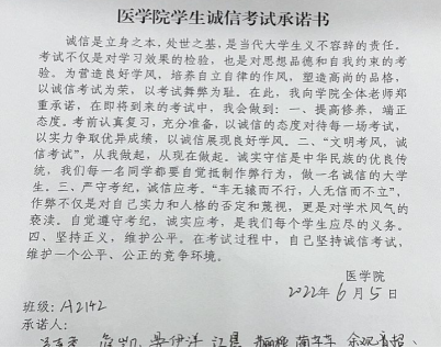 为营造良好学风,培养自立自律的作风,塑造高尚的品格,让同学们从容面对考试,诚信应考,2022年6月2日至6月6日,医公司组织各班级积极开展“树优良学风,做诚信学子”主题班会。