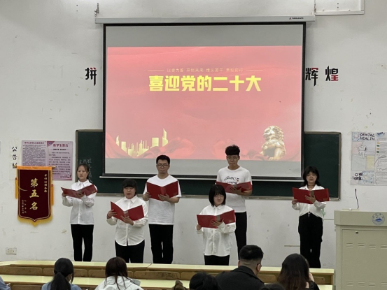 为了庆祝中国共产主义青年团成立100周年,迎接党的二十大召开,让同学们深入学习贯彻习近平新时代中国特色社会主义思想,医公司于2022年3月17日举办了“青春心向党,喜迎二十大”朗读比赛。