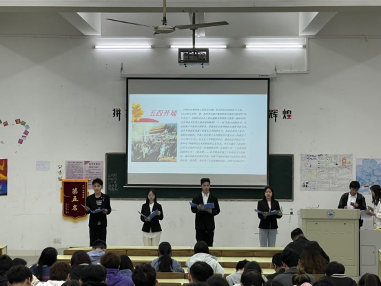 晚上7点,由主持人宣布比赛正式开始。比赛现场气氛热烈,节目内容和形式更是丰富多彩。有的组别朗诵赞美共产党的名篇,让大家在精简的语言中解读了共产党的英伟事迹;有的组别朗诵并演唱歌曲《万疆》,让大家在嘹亮的歌声中体会到气势磅礴的爱国情怀;有的组别表演了《一起向未来》手势舞,让大家在优美的手舞中感受到向上向善的中国力量……这些节目使大家充分认识到共青团作为党的后备力量,团建工作十分重要,团总支部遵循团中央“从严治团”的要求,严明团的纪律,构建“凝聚青年服务大局,当好桥梁,从严治团”的工作格局,进而坚定了团员们对党的政治认同、思想认同、情感认同。选手们以饱满的激情、激昂的语言和大方得体的举止来展现自己的实力,把对党和祖国的感情表达的淋漓尽致。