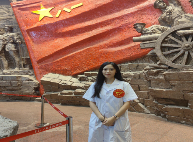 龙子玉、余轩文、周骏、陈鸿涛、张璐瑶几位同学分别前往南昌八一纪念馆、八一广场以及八一馆站、六眼井站、绳金塔站等地方追寻红色足迹。1927年8月1日中共联合国民党左派在南昌打响了武装反抗国民党反动派的第一枪,宣告了中国共产党把中国革命进行到底的坚定立场。