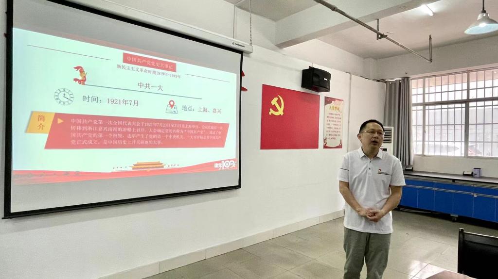 大会在庄严的国际歌声中拉开帷幕。首先,许晓源书记以 “中国共产党党史大事记”为主题,为支部全体党员讲授专题党课。从发展时间、地点和历史意义三个方面,讲述了新民主主义革命时期中国共产党经历的重大事件,包括五四运动、中共一大到中国七大、渡江战役等,希望大家通过党史学习教育,能够做到学史明理,学史增信,学史崇德,学史力行。