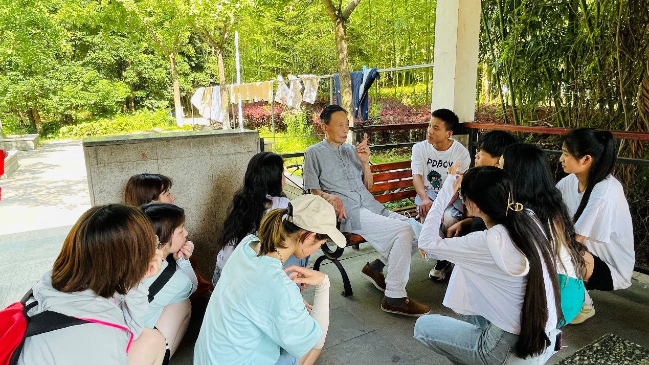 接着大家围成一圈听老爷爷说起了自己原来参军打仗的故事,为了抗战的胜利、国家的未来,将自己的一生都奉献给了祖国,尤其他的革命战友,甚至献出了宝贵的生命,说到这老人家眼中不禁泛起了泪花。