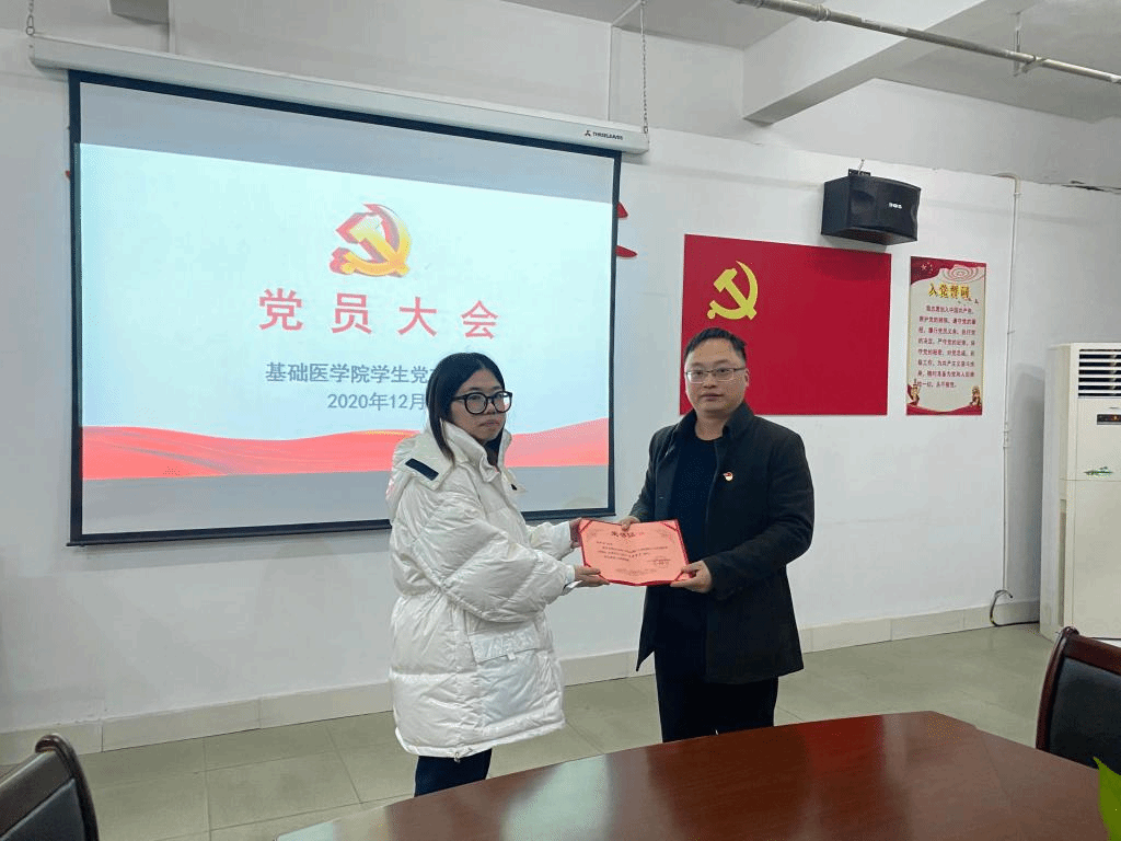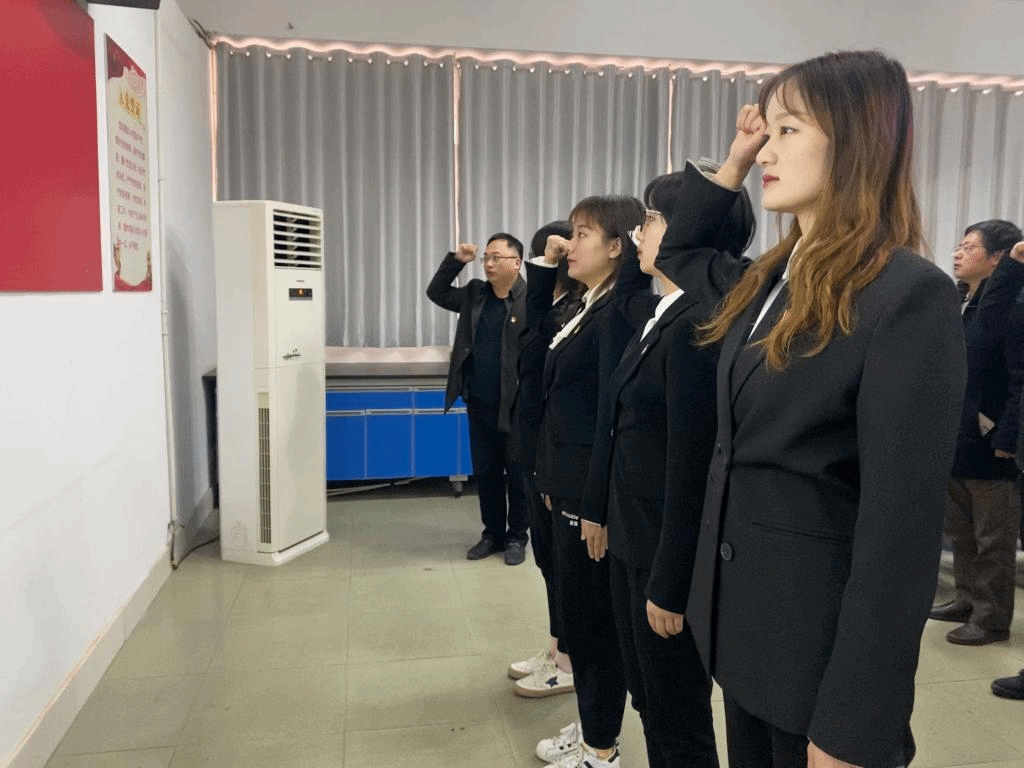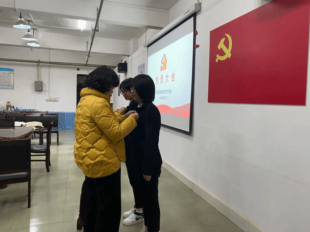 接着进行了新党员入党宣誓、老党员重温入党誓词活动。由老党员代表为两名员工预备党员佩戴党徽并表示祝贺,黄涛带领大家宣誓。随后黄涛同志为本期入党积极分子培训班“优秀学员”颁发证书。